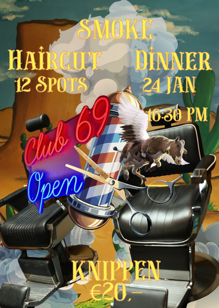 Na een succesvol eerste editie komt de Haircut Smoke Dinner weer terug naar de club! Op 24 januari 2026 is het zo ver! Vanaf 16:30 zijn jullie welkom! Meer informatie volgt! Kijk voor de video van vorige kappers sesh op de homepagina.